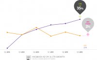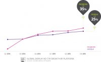 According to ADI, Google’s display click-through rates (CTRs) are up 25% YoY. Here again, Facebook outperforms in terms of display CTR, up 35% YoY.