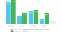 According to the social intelligence portion of ADI’s report, revenue-per-visit (RPV) for traffic coming from social platforms is increasing across the board. It’s no surprise, however, that Facebook still leads the group with the highest referred RPV, followed by Pinterest. “What is interesting is how fast Reddit is closing the gap with the other social platforms, given the difficulties they have been facing of late, ” Roberts said. In fact, Reddit has almost caught up with Twitter by more than doubling its referred RPV.